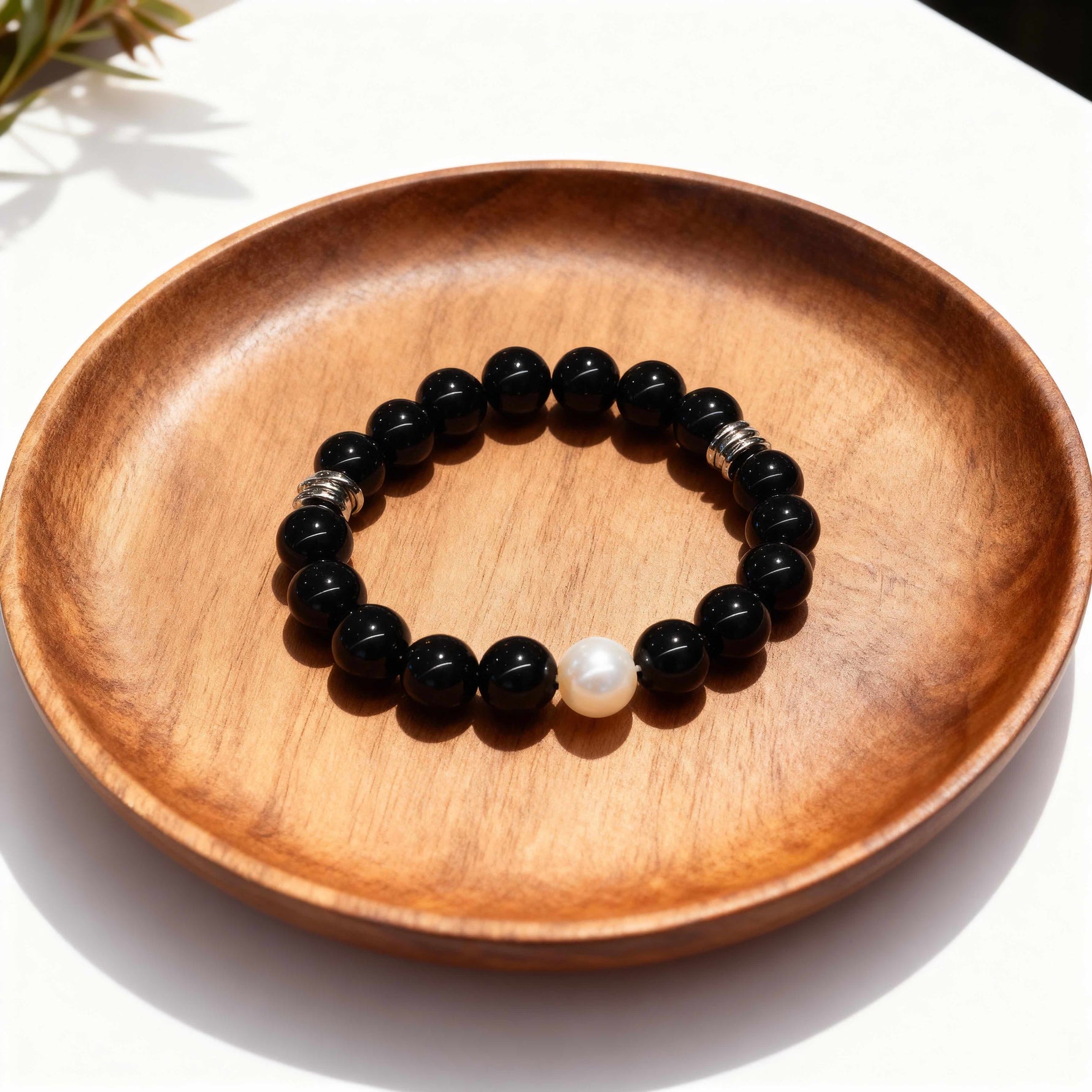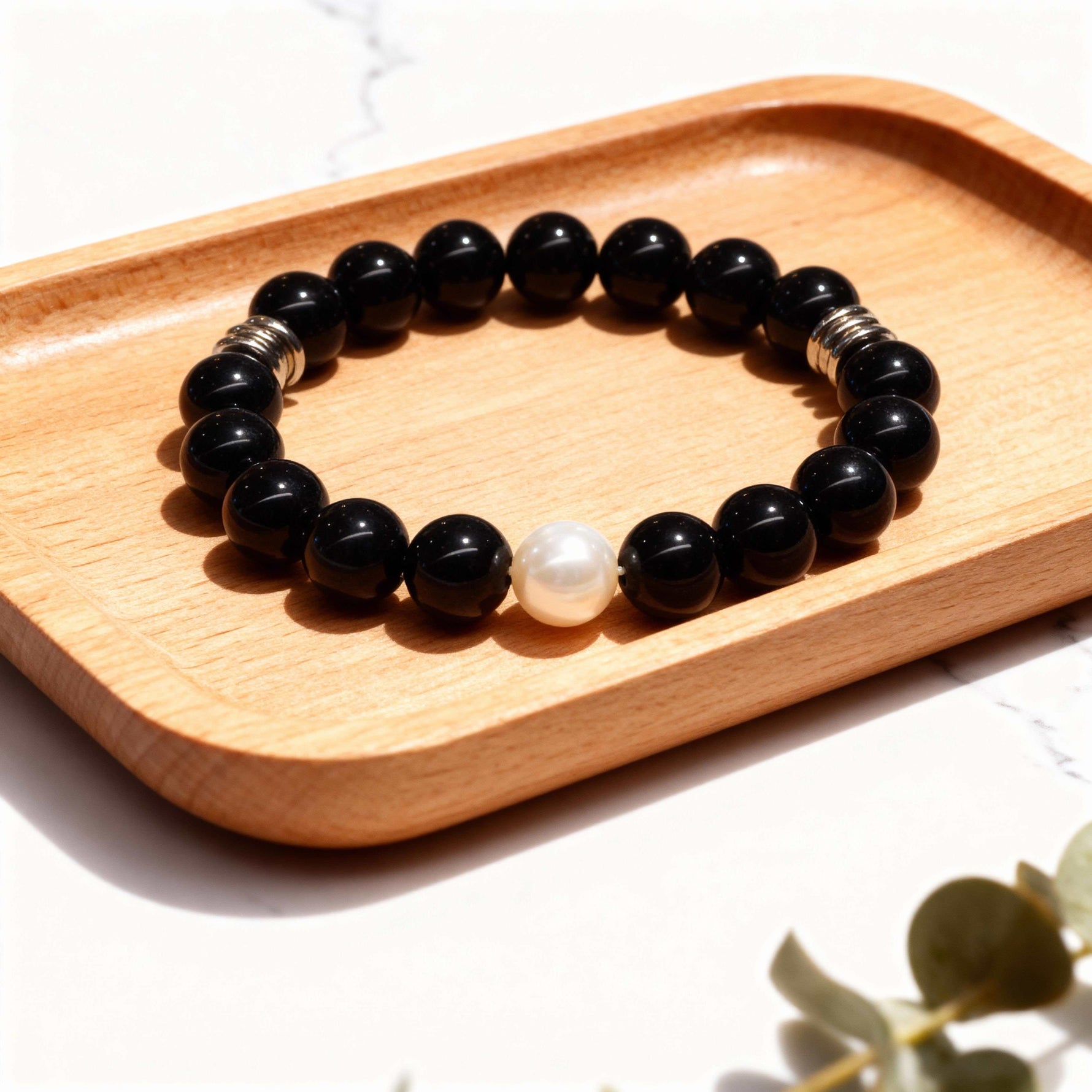 • Related Terms: obsidian bracelet, pearl jewelry, protective crystal bracelet, elegant spiritual jewelry, unisex protection bracelet