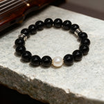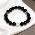 Obsidian & Pearl Elegant Amulet Bracelet: Deep Guarding, Soft Luster