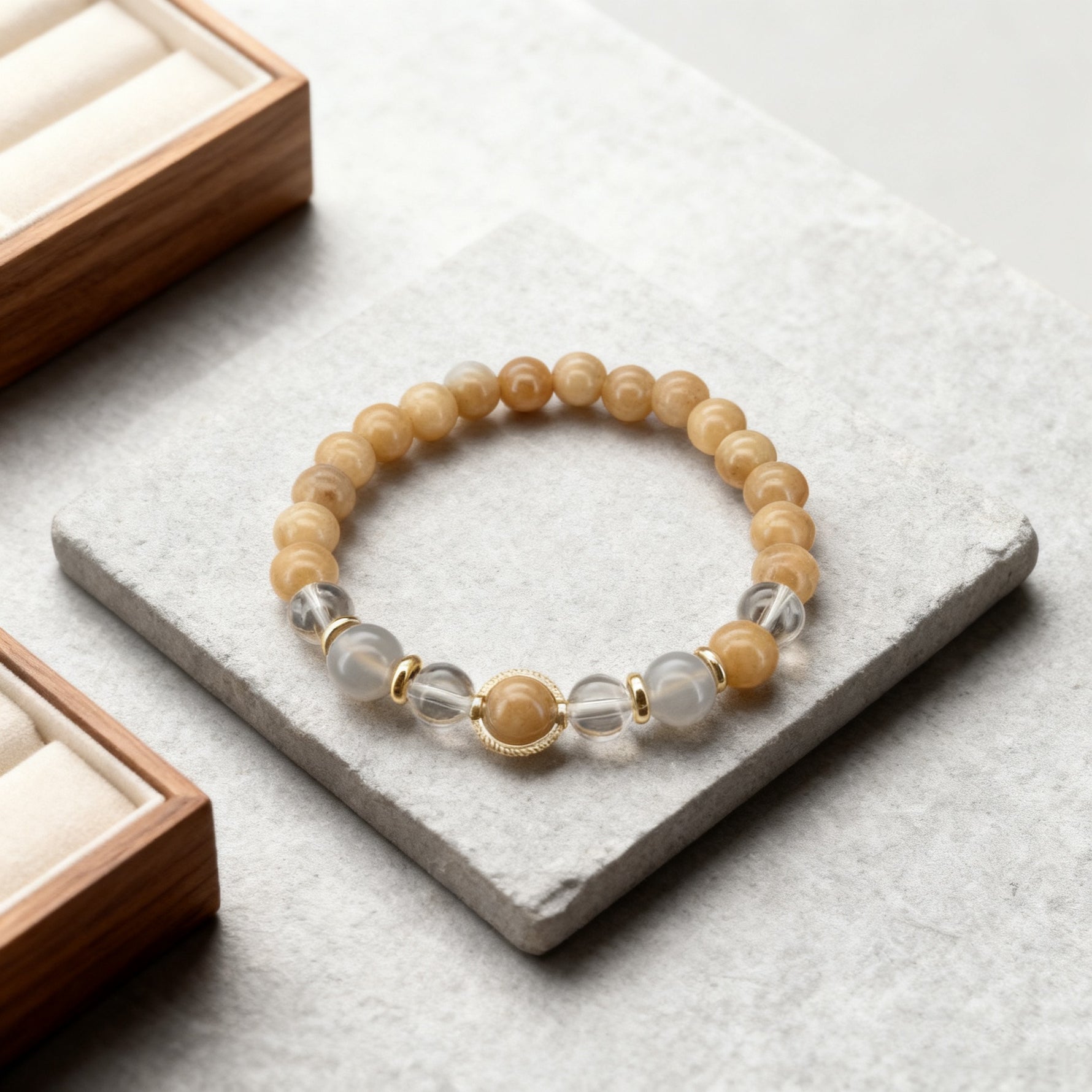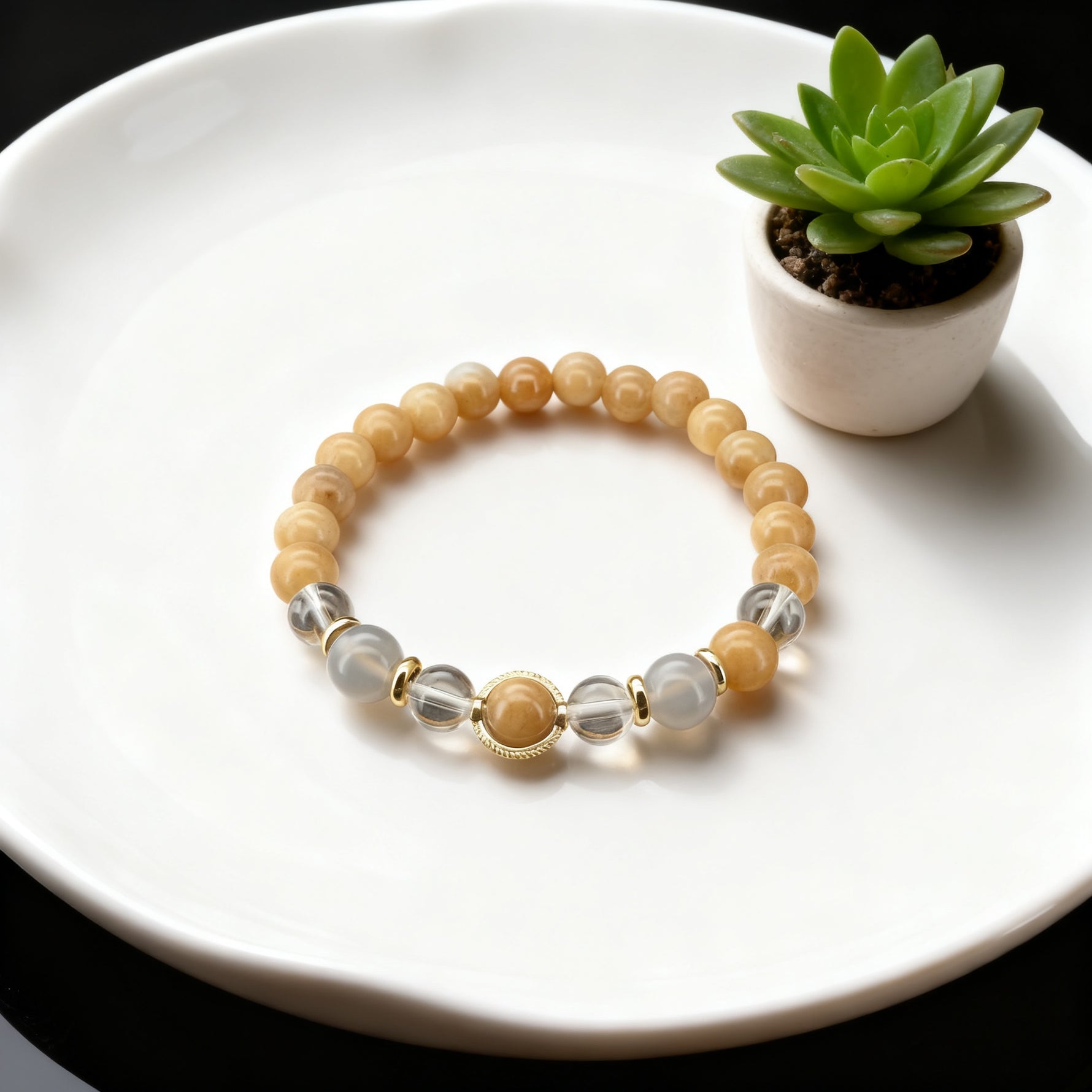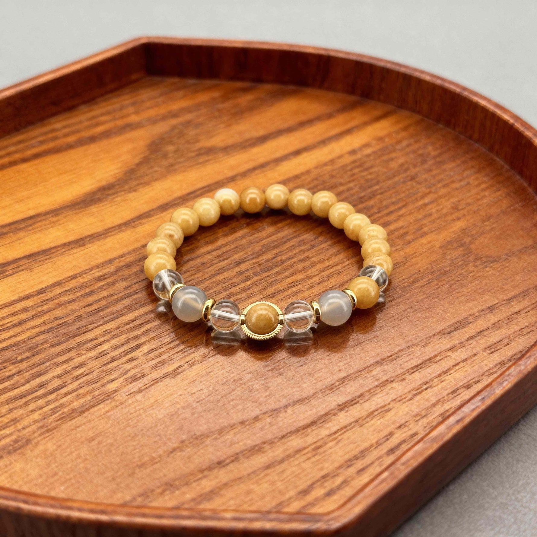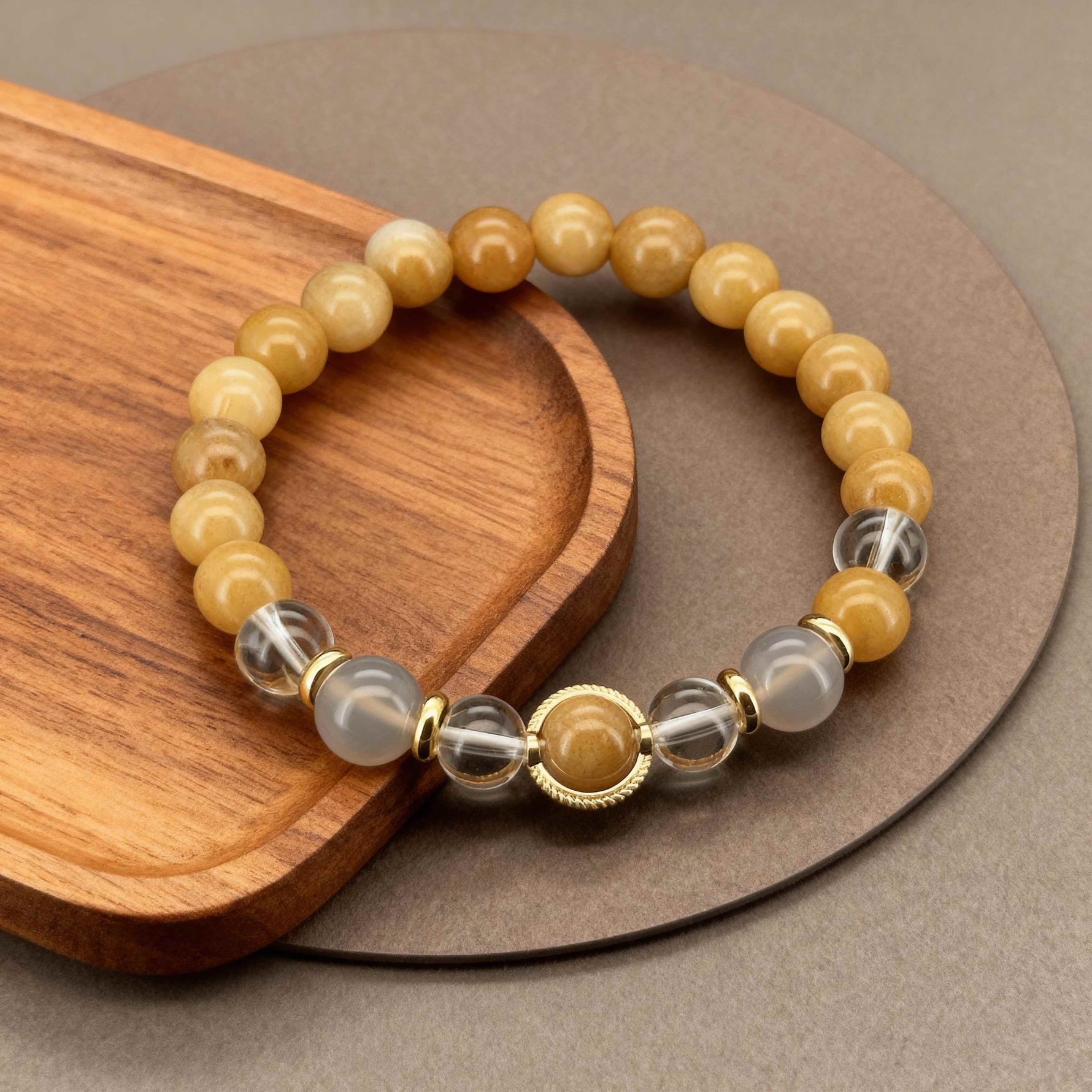 • Related Terms: yellow jade bracelet, clear quartz wealth jewelry, abundance crystal bracelet, wealth energy jewelry, unisex prosperity bracelet