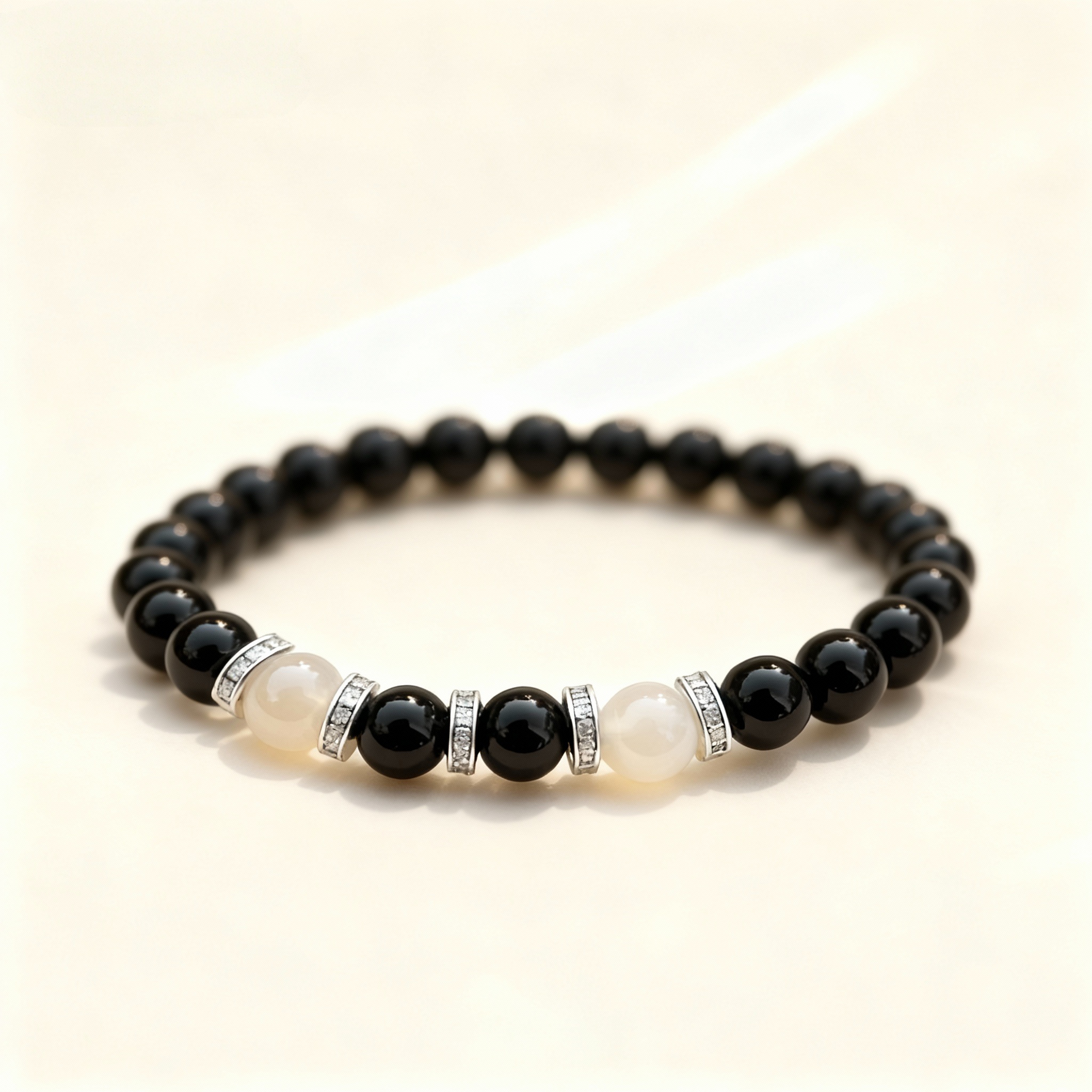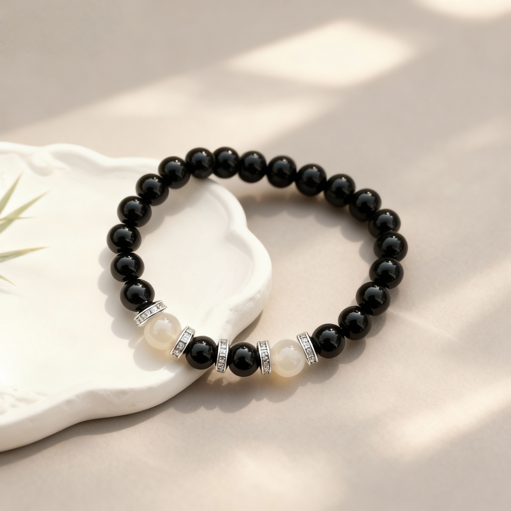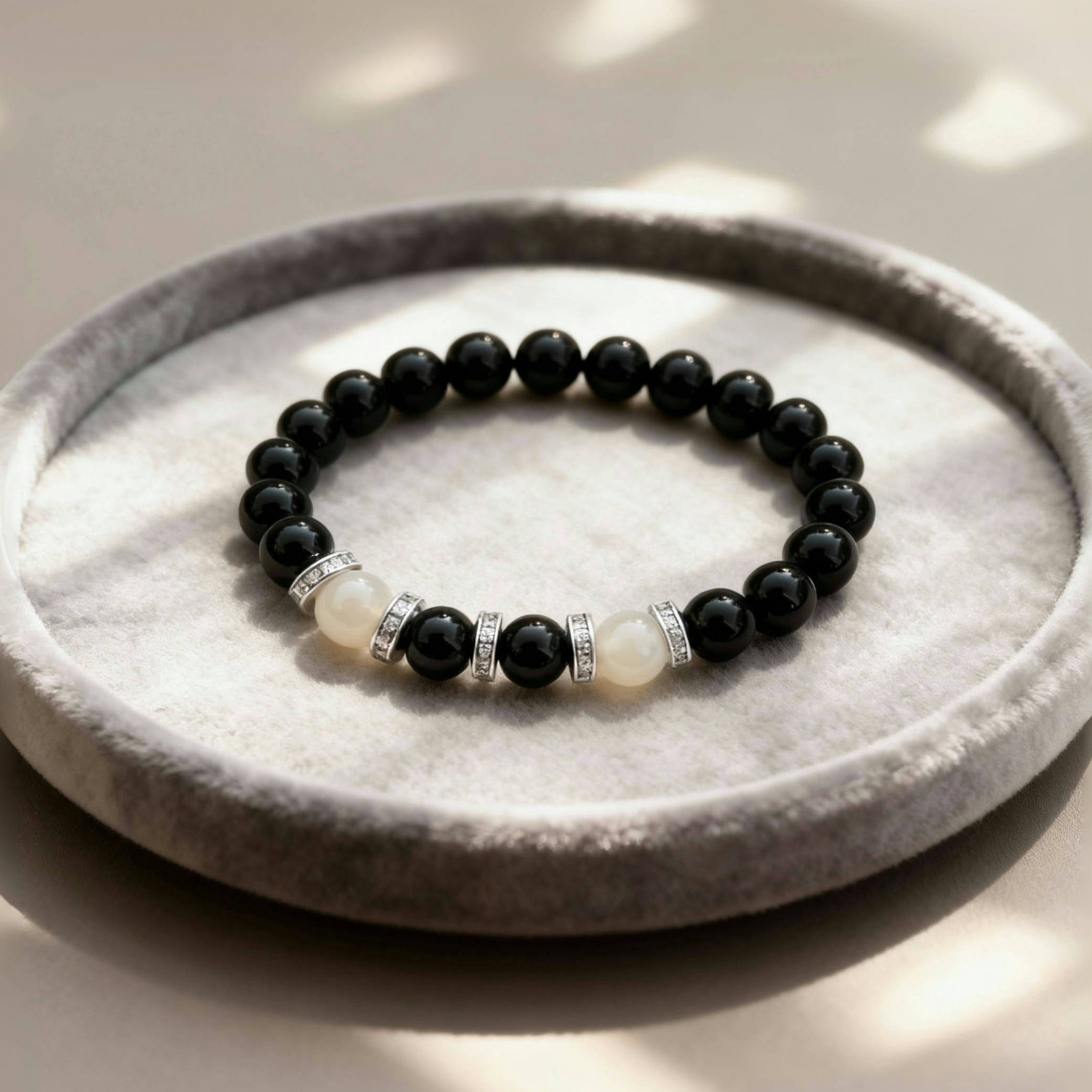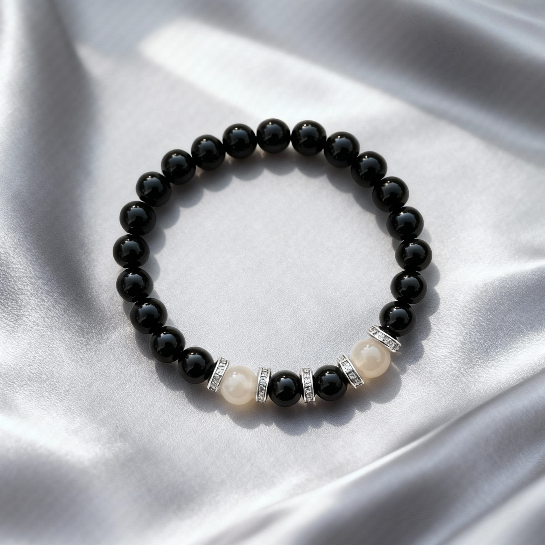 This bracelet is a masterclass in protection and balance. Obsidian deflects negativity and cleanses your energy field, while grey agate nurtures emotional stability and inner peace. The monochromatic black-and-grey palette is effortlessly chic, fitting into both casual and refined wardrobes. Whether you’re navigating a stressful day, seeking mental clarity, or aiming for a polished look, it empowers you with a sense of security, calm, and timeless style.