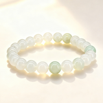 This bracelet is a celebration of wood element growth and vibrant vitality. Tian Shan Jade’s wood properties fuel personal growth, attract fortunate opportunities, and boost physical stamina. The soothing greenish-white palette exudes natural sophistication, fitting seamlessly into both casual and intentional wardrobes. Whether you’re pursuing personal development, embracing wellness journeys, or seeking new opportunities, it empowers you with growth, vitality, and timeless charm.