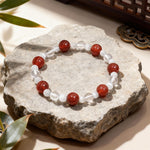 This bracelet is a powerful fusion of vitality, clarity, and allure. Red agate fuels your passion and confidence, clear quartz cleanses your energy field and sharpens mental focus, while cat's eye stone infuses intuitive insight and glamorous charm. The contrasting hues of red, clear, and cat's eye create a visually striking look that seamlessly transitions from casual to elevated styles. Whether you’re navigating a busy workday, socializing, or seeking inner balance, it empowers you with vibrancy, mental clarity, and feminine elegance.